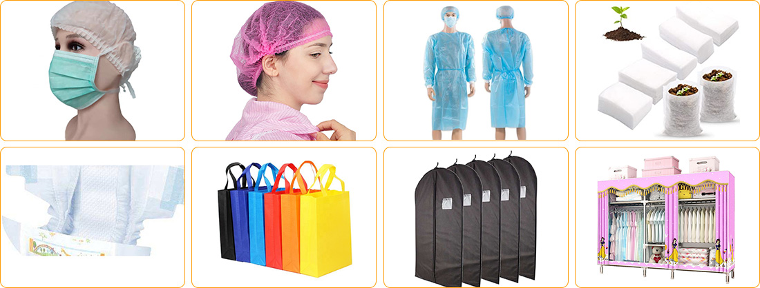1. Netkaný obalový produkt: Nákupní taška, obal na oblek, obal na rýži, obal na pletené zboží, čajový sáček, obal na oblečení, ubrus, další produkty, včetně povlaku na polštář, přehozu, krytu na auto na přikrývku, krytu počítače, klimatizace a ventilátoru atd.